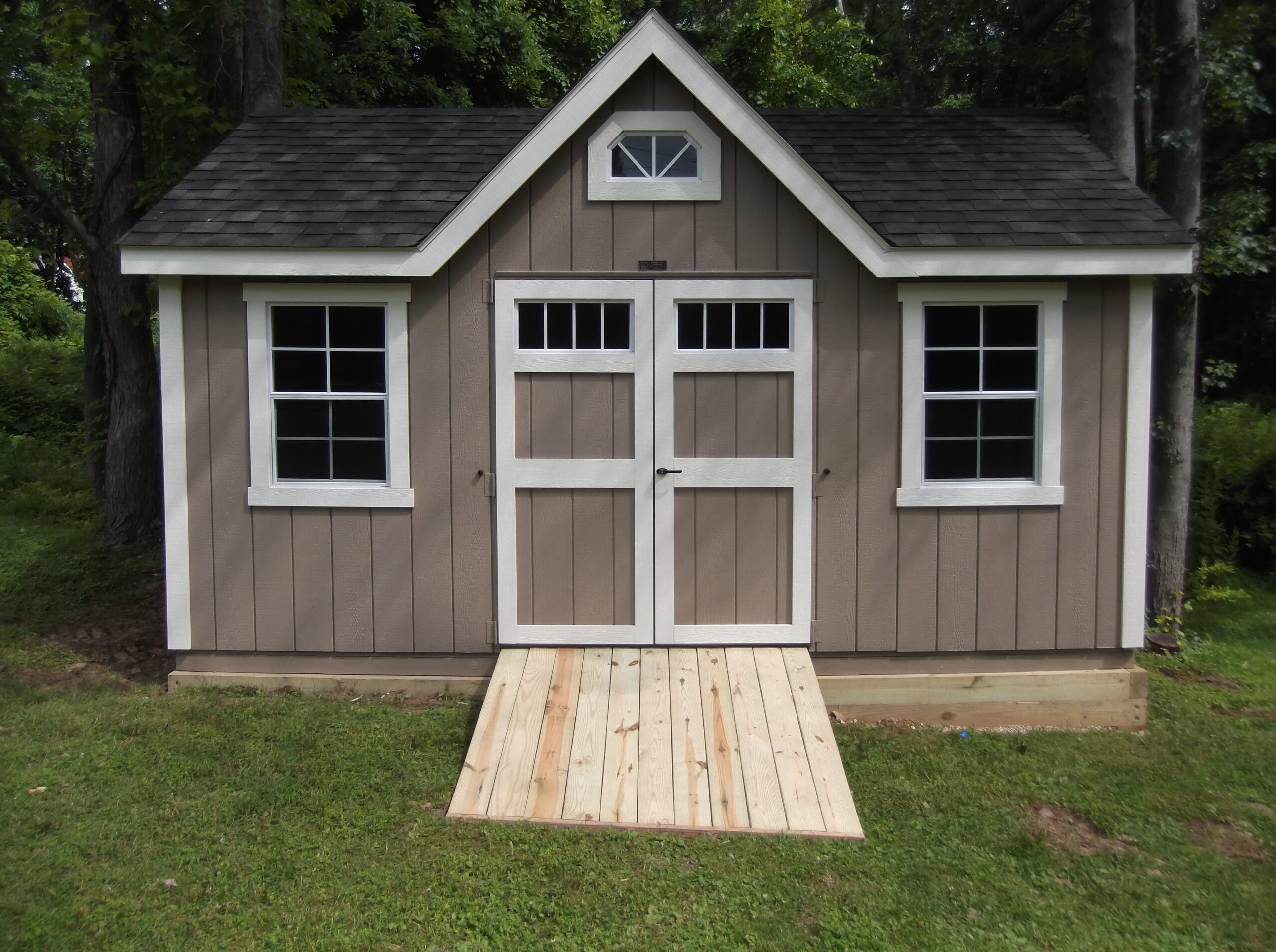 This spacious 12' x 20' shed is equipped with durable vinyl siding, upgraded windows measuring 24" wide by 36" high for enhanced lighting, and a 5' x 5' permanent ramp for easy access. Designed for both functionality and style.